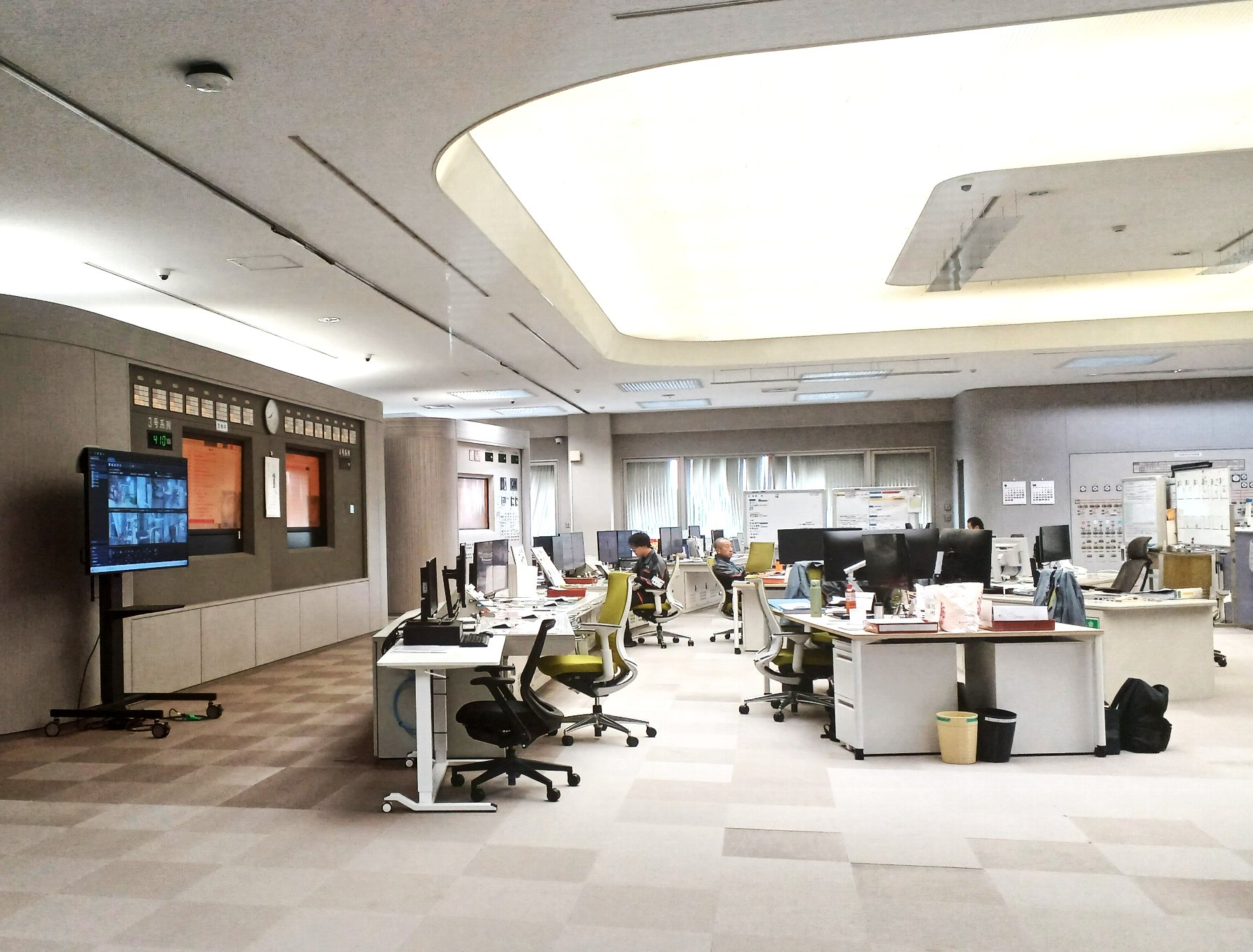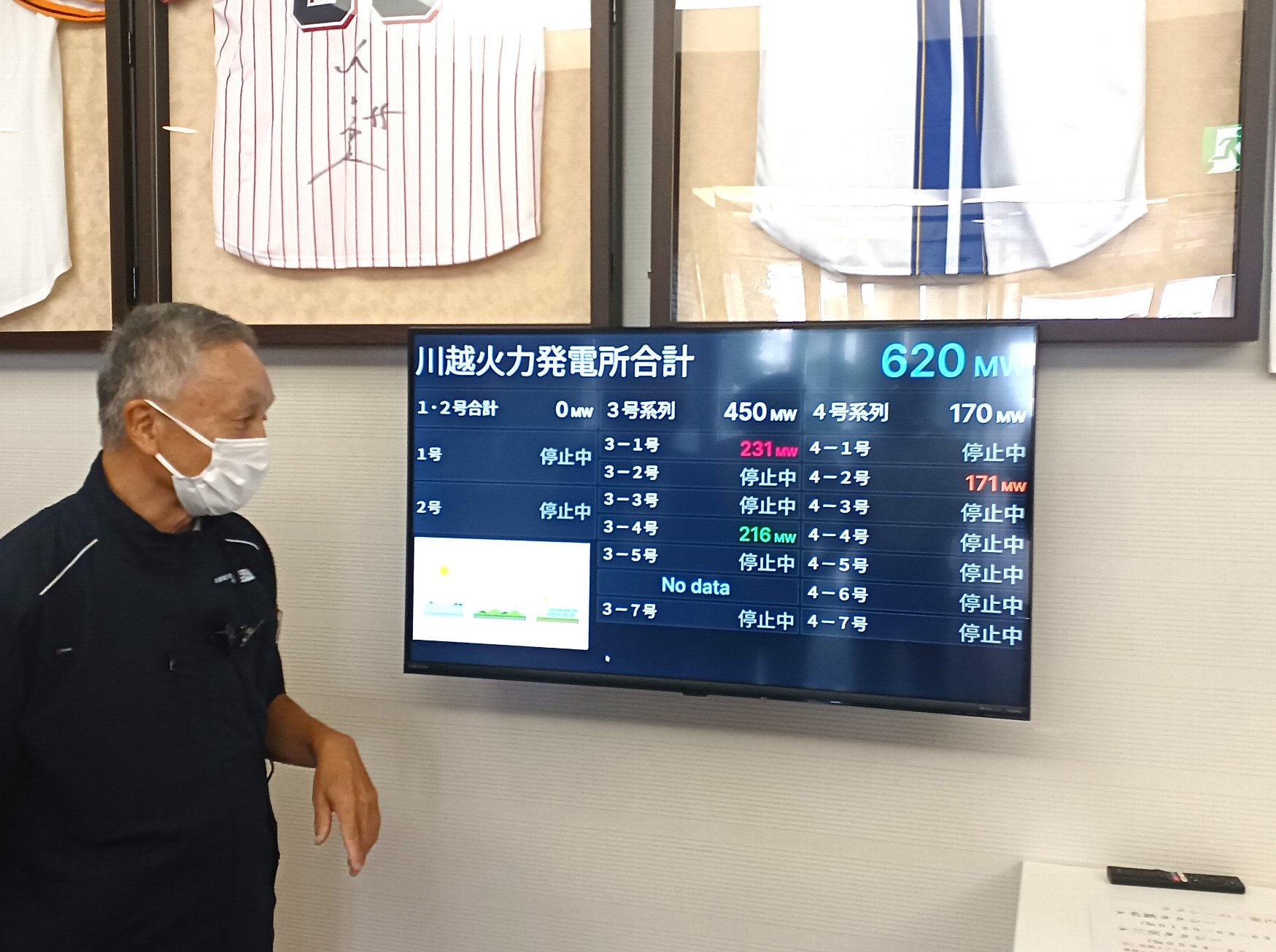 訪れた日は、猛暑も収まり電力需要も少ない日だったので稼働率は相当低い状況でした。管理室で全てが制御されています。