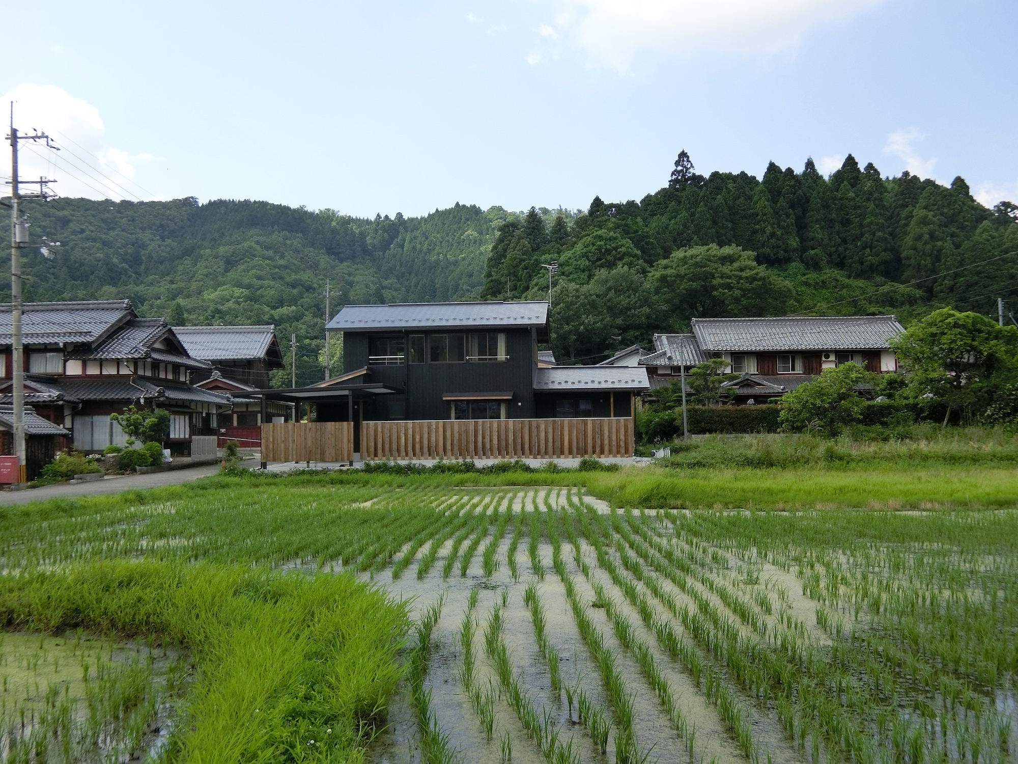 外観は、黒を基調とした焼き杉板が印象的なデザイン。