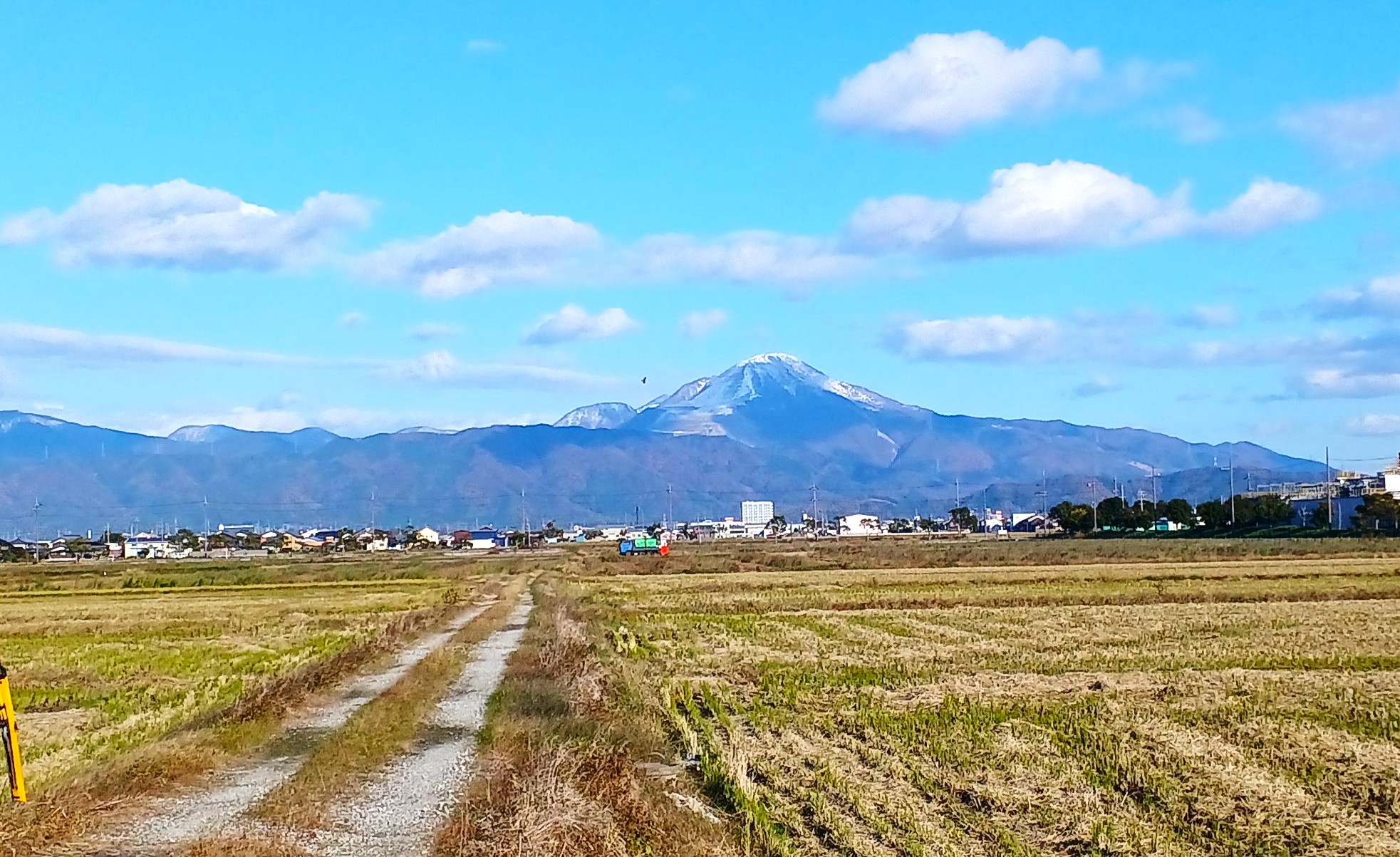 11月19日に伊吹山に初冠雪がありました。昨年より12日早く、例年より1日早いそうです。朝出勤するときに正面に白くなった伊吹山を見ると、もうすぐ冬かなと実感します。