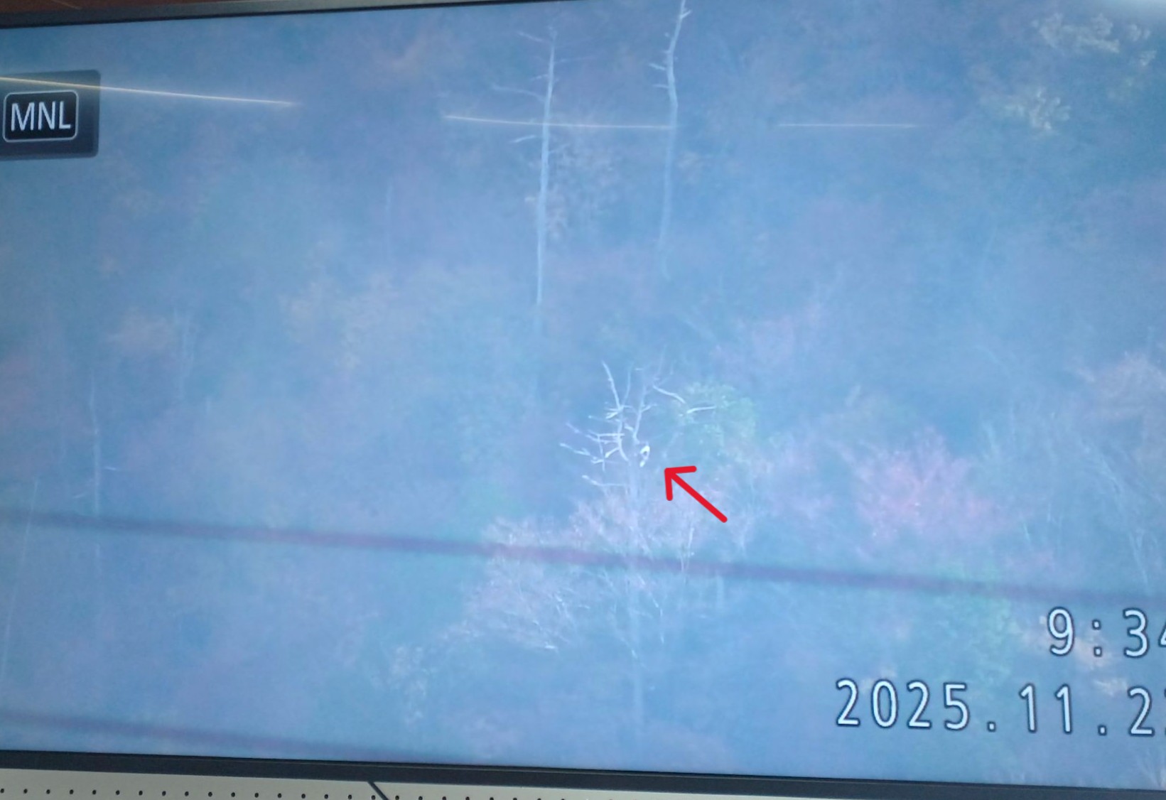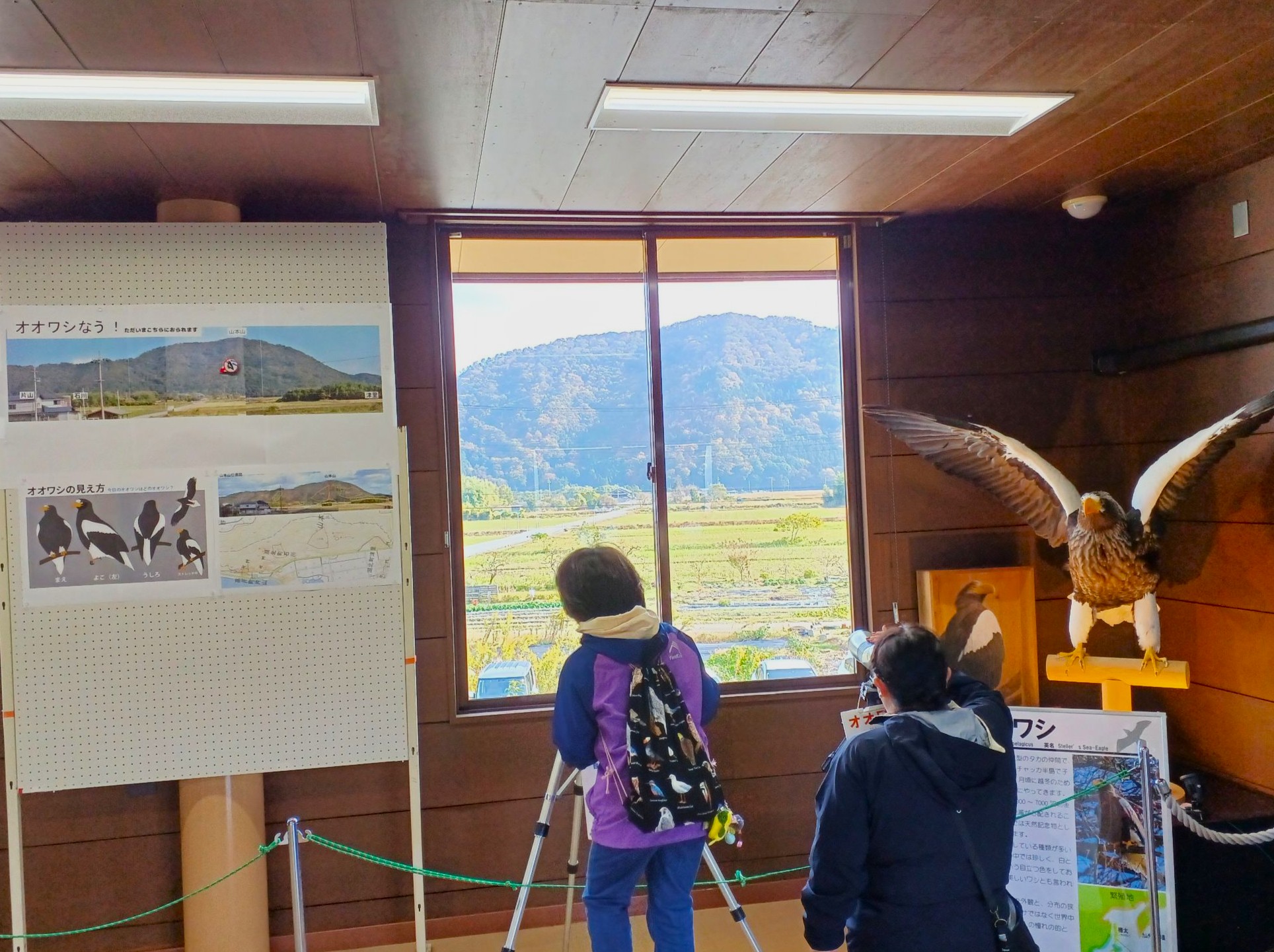 センター施設の中から山本山の方向に、据え付けられた望遠鏡で、木の枝に止まっているところを見ることができます。