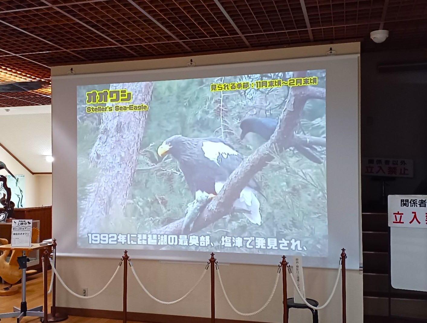 遠くオホーツクを越えて29シーズン連続でこの地に飛来している「山本山のおばあちゃん」と呼ばれている「オオワシ」です。体長1メートル、翼を広げると2.5メートルもある大きな鳥です。