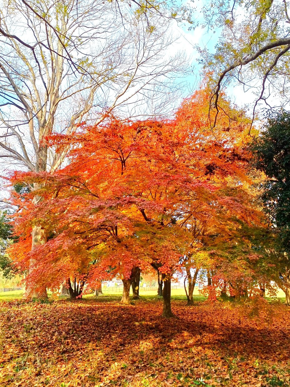 その周辺の見事に敷き詰められた落ち葉の絨毯の上を歩いて、最後の紅葉を堪能しました。