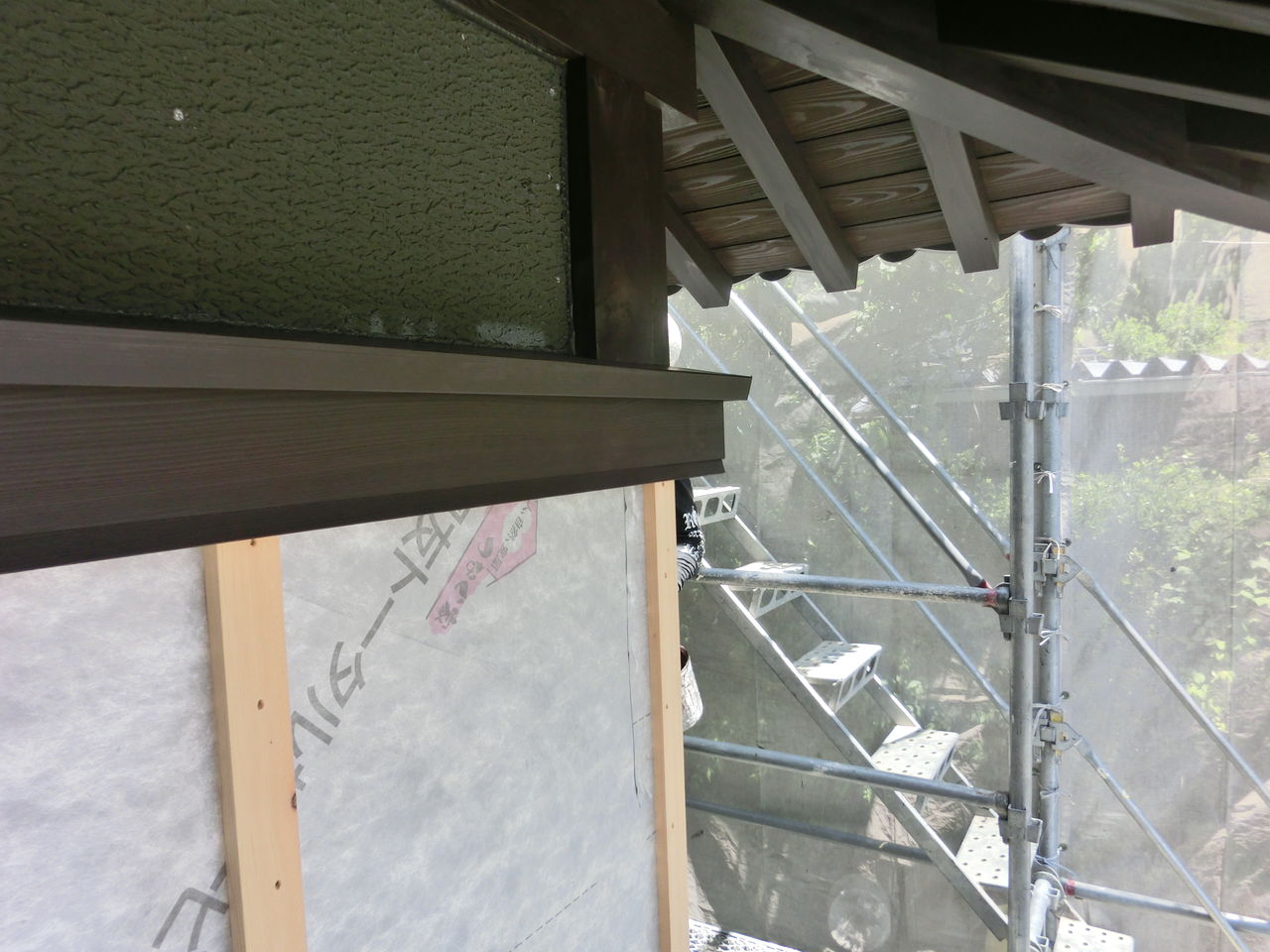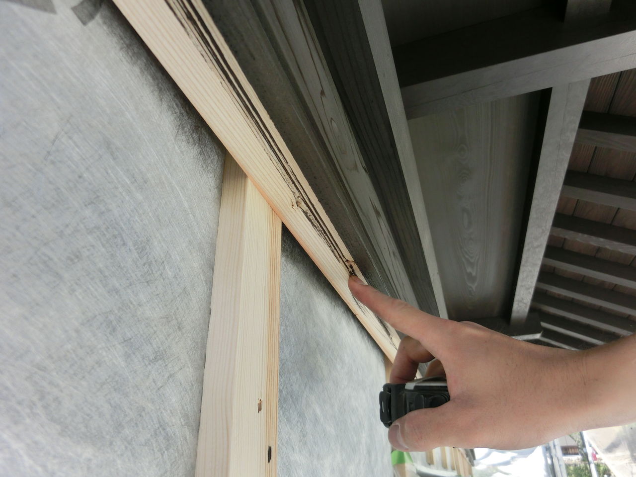 こうしておくと、貼替え時も帯はそのままで、笠木、漆喰も痛めることなく焼板のみ張り替えることが出来ます。
