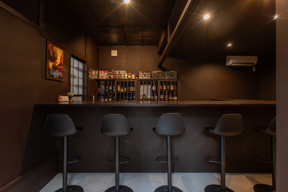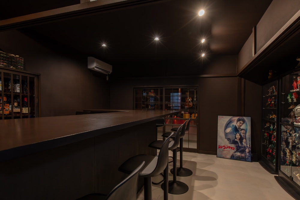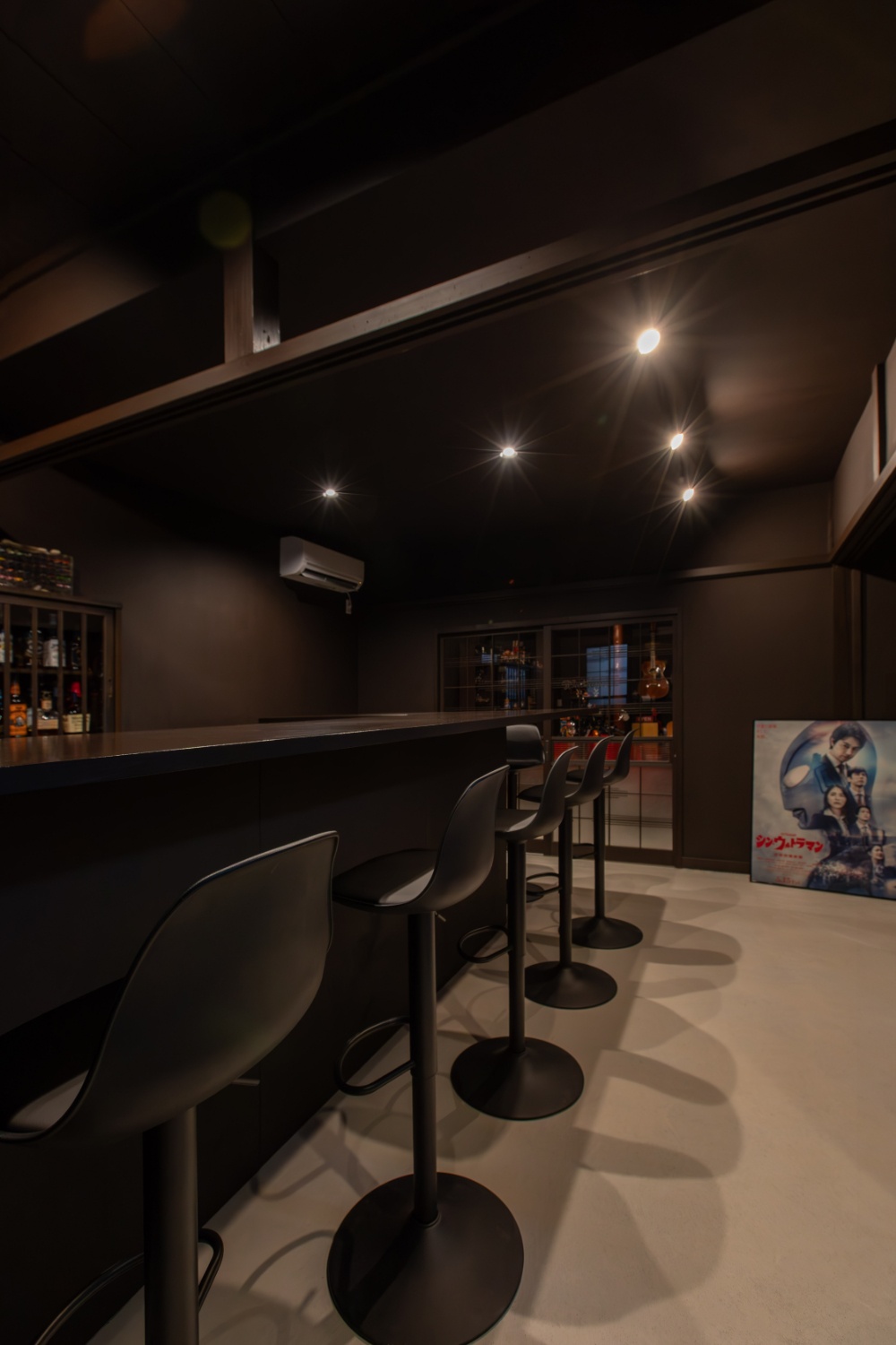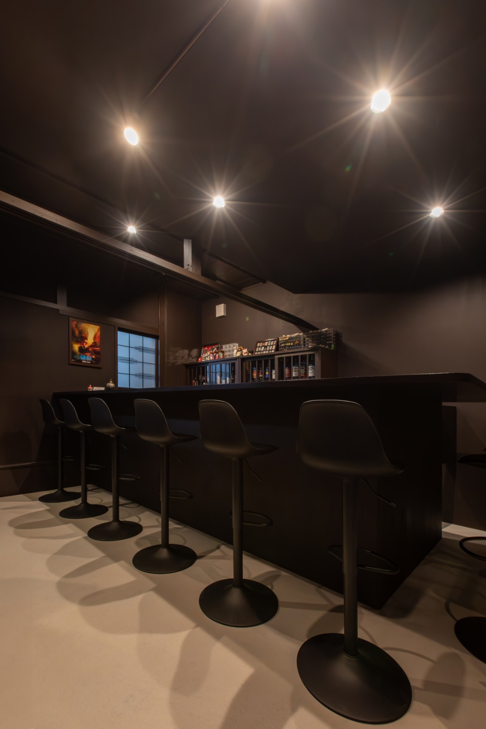 バーカウンターが鎮座し、コンクリートの土間との相性も抜群です。