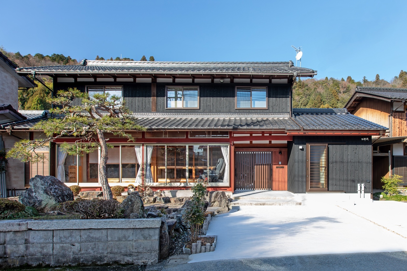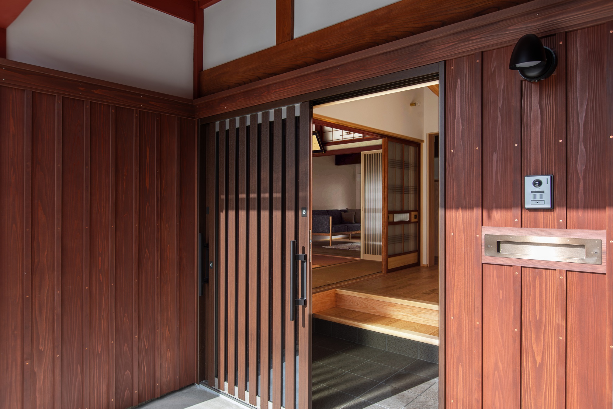外壁:焼杉板、左官壁