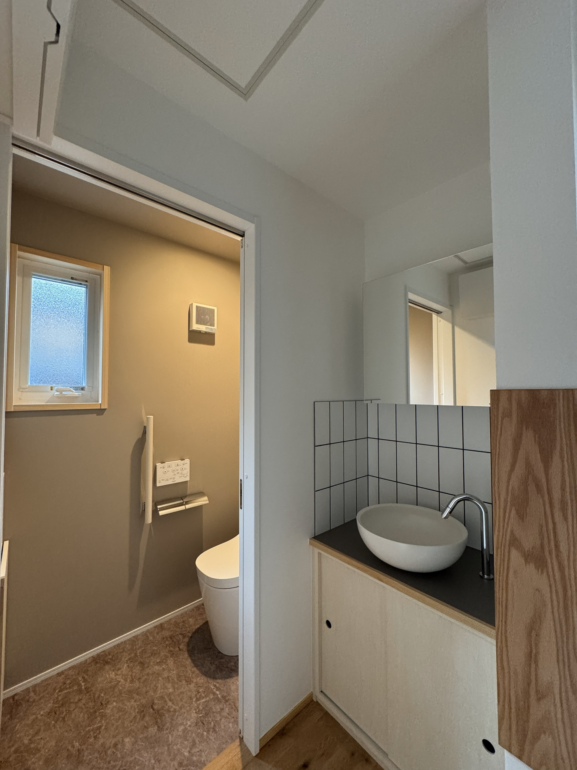 内壁:漆喰塗り壁、空気を洗う壁紙(通気性)